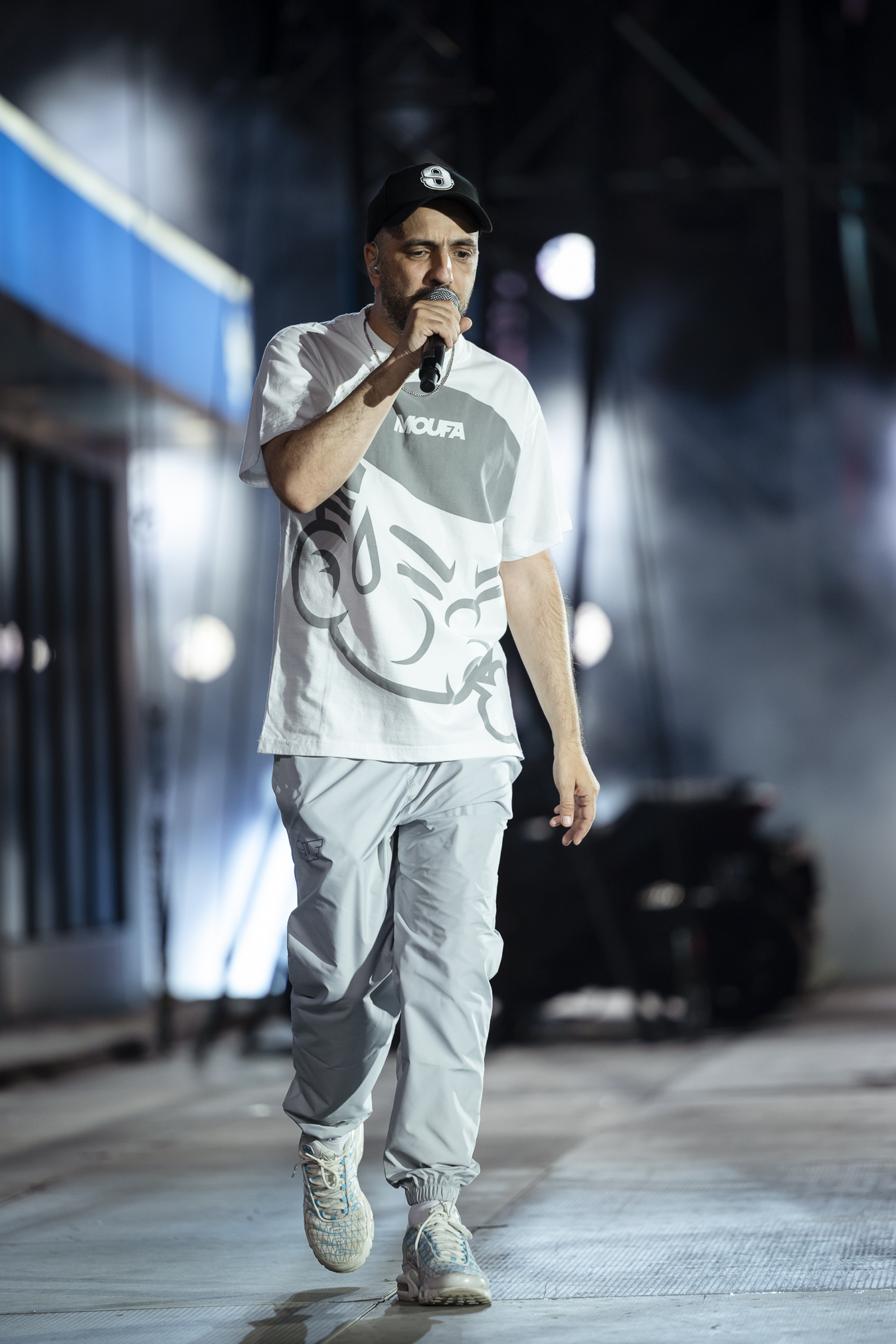 Στο event, στο ΟΑΚΑ, οι φαν είχαν τη δυνατότητα να ζήσουν κάτι που ξεπερνούσε την εμπειρία της αγοράς: Ένα ειδικά σχεδιασμένο backdrop, βασισμένο στο εξώφυλλο του τελευταίου άλμπουμ του ΛΕΞ. Με τον ίδιο να κάθεται, φορώντας το καπέλο, με το βλέμμα χαμηλωμένο.