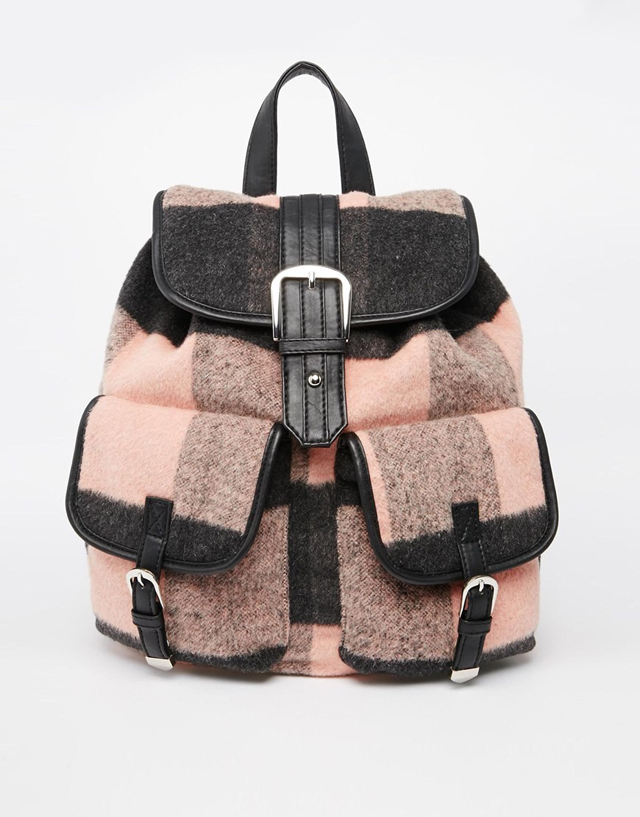 Φτιαγμένη από μαλλί και δέρμα, η ροζ καρό τσάντα θα κάνει πιο girly οποιοδήποτε σύνολό σου.
