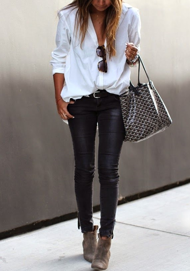 Με δερμάτινα μποτάκια και πουκάμισο για τη δουλειά.