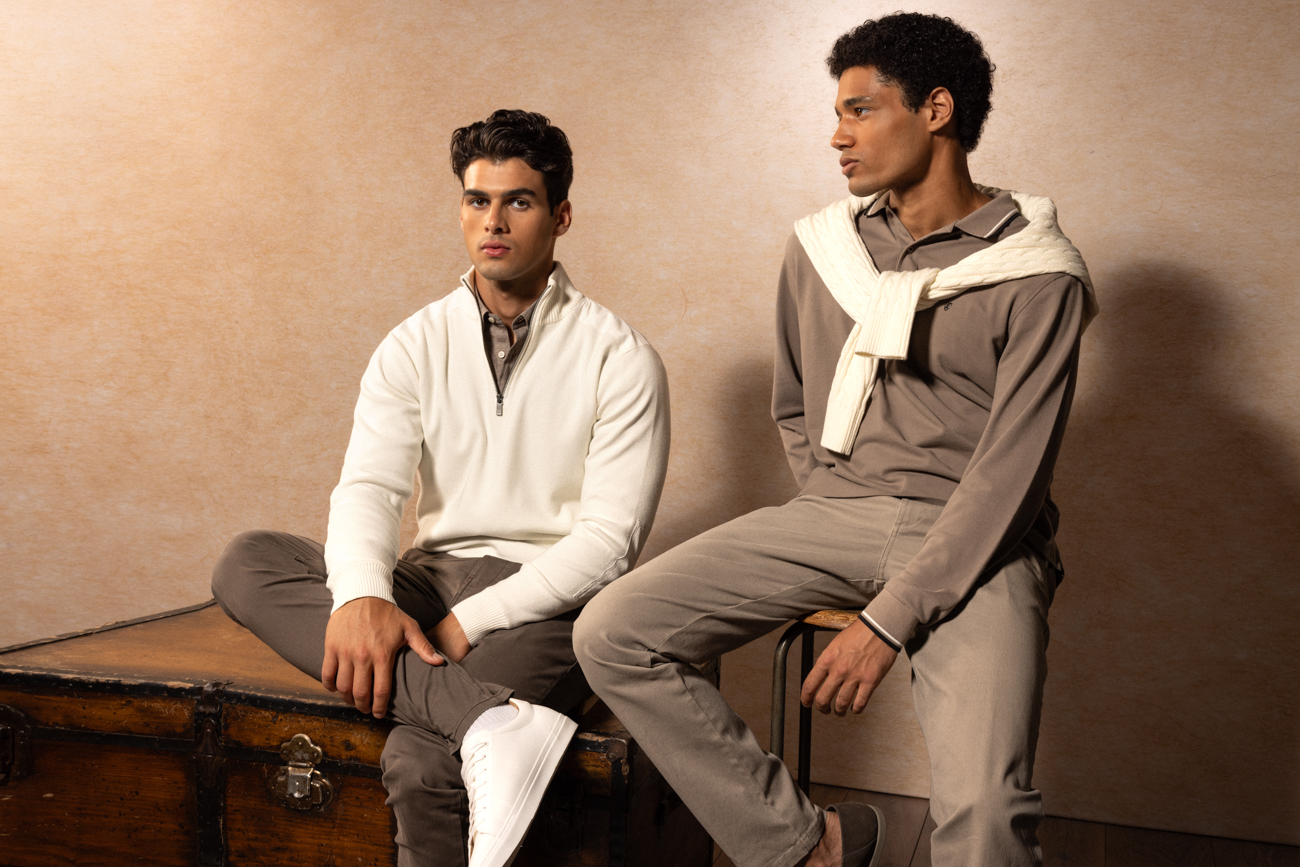 Στα παντελόνια, και πιο συγκεκριμένα στα κομψά city trousers, τα κλασικά chinos, τα μοντέρνα corduroy αλλά και τα denims σε διάφορα πλυσίματα, οι γραμμές είναι πλέον πιο relaxed, δίνοντας προτεραιότητα στην άνεση. Καλύπτουν έτσι κάθε στιγμή της ημέρας: από τα πρωινά στο γραφείο έως τις βραδινές εξόδους. Στο ίδιο πνεύμα, η συλλογή εμπλουτίζεται με μια νέα athleisure πρόταση: μια τεχνικά εξελιγμένη φόρμα που ενσωματώνει τη λειτουργικότητα στο καθημερινό στυλ.