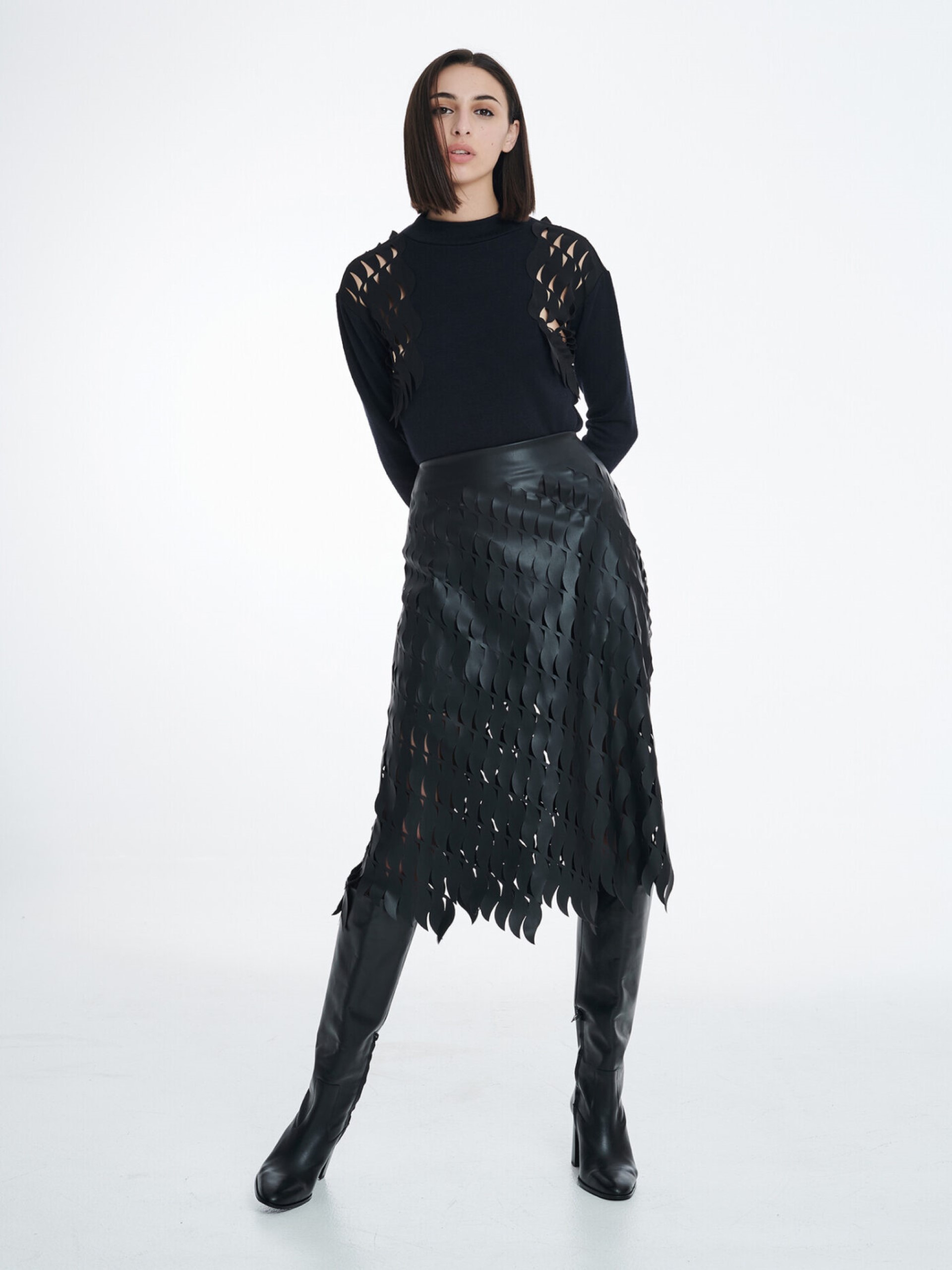 Πουλόβερ μαύρο με λεπτομέρειες από laser-cut γύρω από τους ώμους Cut cuutur