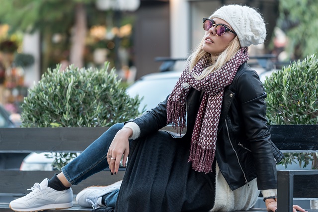 Ελπίζοντας ότι θα μπει χειμώνας κάποια στιγμή σε αυτή την χώρα, η Έλενα φόρεσε το σκουφάκι της, ένα NamasteJeans και ένα σκούρο γκρι φόρεμα της BO2, και κάθησε έξω από το μαγαζί της Ζωής. Ξαφνικά, έπιασε λίγο κρύο, μήπως να πάμε να πάρουμε κανένα χειμωνιάτικο από το Zoi by All Jeans;