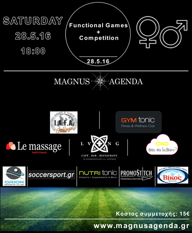 Η MAGNUS AGENDA, το Σάββατο 28/5 κάνει πραγματικότητα το 1ο Functional Games & Competition Event στη Γλυφάδα. Αυτό δεν θέλεις να το χάσεις.