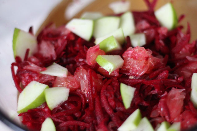 ΥΛΙΚΑ : 2 παντζάρια βρασμένα &1 πράσινο μηλο & ½ ποτήρι φυσικό χυμό γκρέιπφρουτ