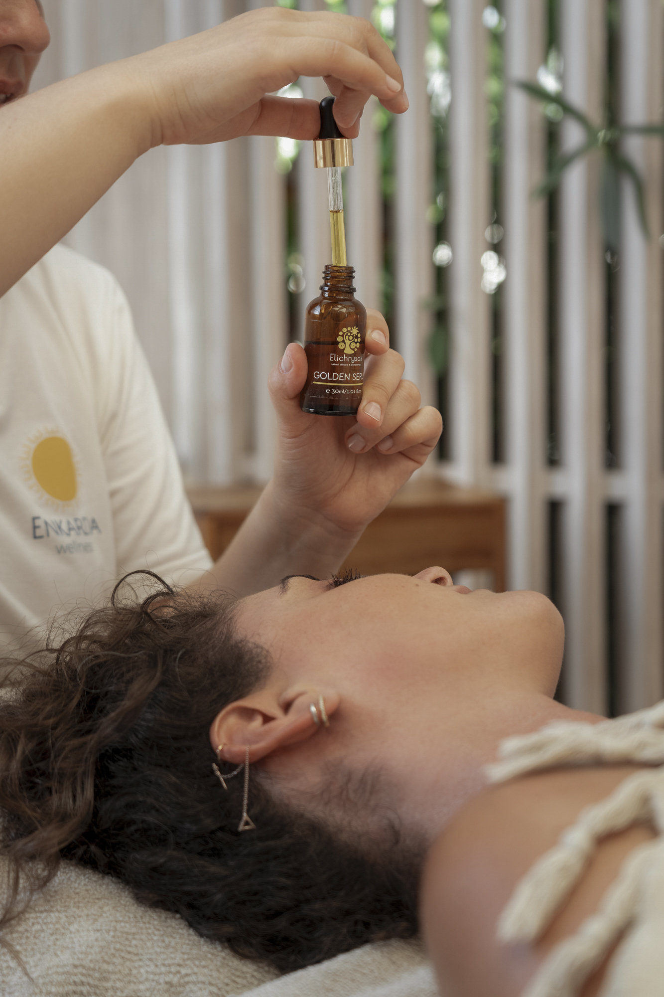 Στα Αστέρια, οι επισκέπτες μπορούν να απολαύσουν ένα ειδικά σχεδιασμένο μενού micro spa θεραπειών, προσαρμοσμένο στο φυσικό περιβάλλον και τις ανάγκες του καλοκαιριού. «Ως Enkardia Wellness προσφέρουμε μια ευρεία γκάμα υπηρεσιών ευεξίας, από θεραπευτικά και ενεργειακά μασάζ, sound healing και yoga, μέχρι περιποιήσεις προσώπου και τελετουργικά όπως cacao ceremonies, ecstatic dance. Μπορεί κανείς να δει το σύνολο των υπηρεσιών μας στο site. Ωστόσο, κάθε χώρος για εμάς είναι μοναδικός και έτσι τον αντιμετωπίζουμε. Για τα Αστέρια, και πιο συγκεκριμένα για τον ιδιαίτερο χώρο του Bungalow 7, σχεδιάσαμε ένα ειδικό customised μενού με micro spa treatments. Περιλαμβάνει κυρίως επιλεγμένα είδη μάλαξης και θεραπείες που προσφέρουν ανακούφιση και ενυδάτωση στο δέρμα, ιδανικές μετά από πολύωρη έκθεση στον ήλιο. Σκοπός μας είναι οι επισκέπτες να νιώσουν τη φροντίδα με τρόπο απλό, αυθεντικό και απόλυτα ταιριαστό στο περιβάλλον που τους φιλοξενεί», εξηγεί.