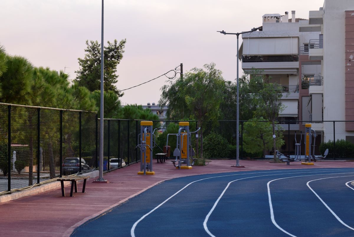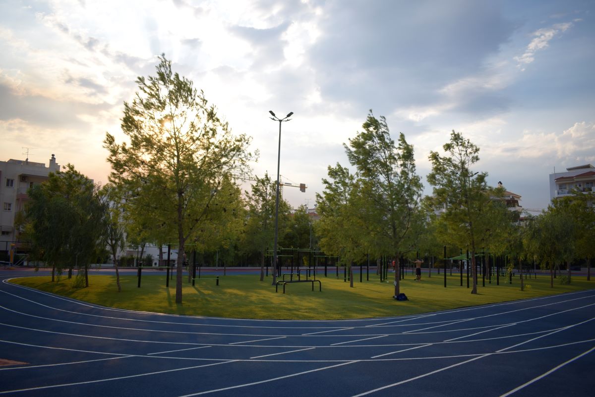 Εντός του πάρκου βρίσκει κανείς ένα σύγχρονο ανοιχτό γήπεδο στίβου αλλά και όργανα γυμναστικής. Πρόκειται για το ιδανικό τερέν για περπάτημα, τρέξιμο ή για γυμναστική. Παράλληλα, το γήπεδο είναι γεμάτο με πράσινο, προσθέτοντας χρώμα αλλά και την απαραίτητη ανάσα δροσιάς στο αστικό τοπίο τριγύρω.