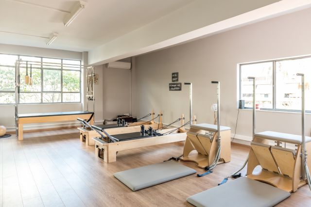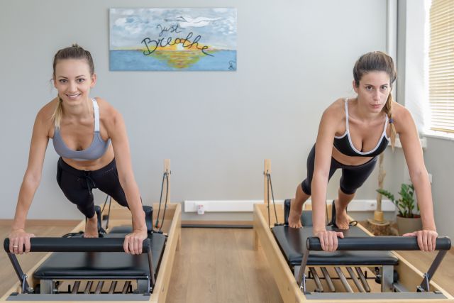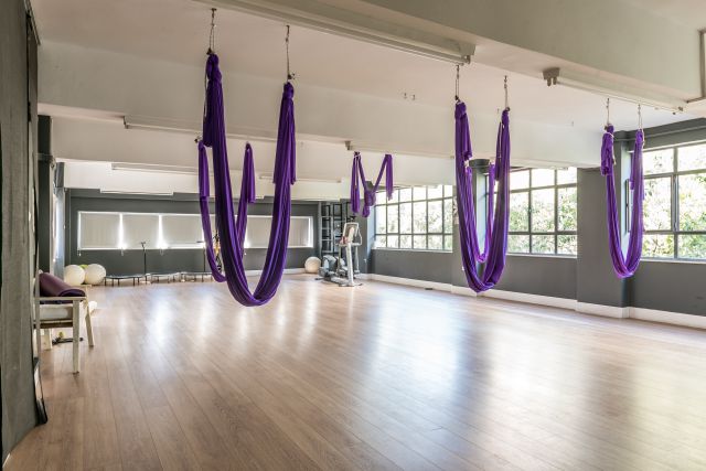 Έχουμε τα ομαδικά προγράμματα που είναι Pilates Mat, το αερόβιο μάθημα του Fat Burn, Aerial Yoga για τον πιο fun και παιχνιδιάρικο χαρακτήρα και μετά τα groups των Pilates Equipment. Στα ομαδικά προγράμματα είμαστε μέχρι οκτώ. Στα κρεβάτια του pilates έως πέντε.