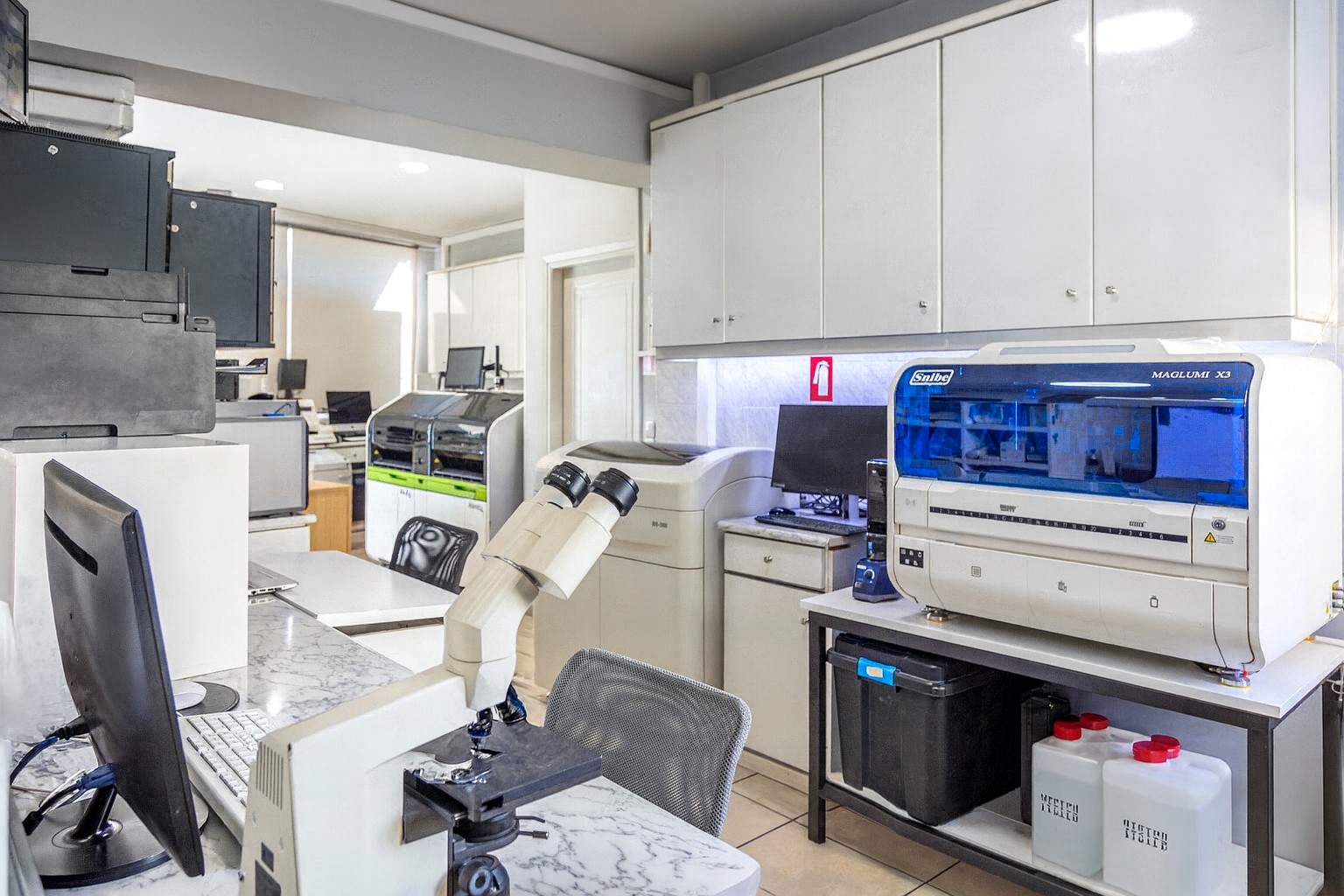 Πρόσφατα, στους ήδη υπάρχοντες αναλυτές του εργαστηρίου, προστέθηκε ο Alinity CΙ της Abbott, μια ολοκληρωμένη πλατφόρμα βιοχημικών και ανοσολογικών αναλύσεων, σχεδιασμένη για μέγιστη αποδοτικότητα και ακρίβεια. Ο συνδυασμός των συστημάτων Alinity C και Alinity I σε ενιαία, αρθρωτή μονάδα με κοινό λογισμικό εξασφαλίζει μέγιστη αξιοπιστία, συνεχή λειτουργία και παραγωγικότητα έως 1.550 τεστ ανά ώρα. Όλες οι εξετάσεις πραγματοποιούνται εντός του εργαστηρίου και τα αποτελέσματα παραδίδονται άμεσα.