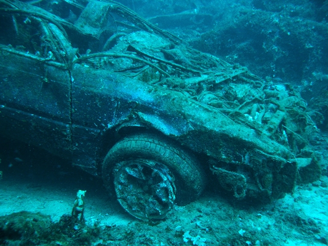 Στο 59ο χιλιόμετρο της παραλιακής λεωφόρου Αθηνών-Σουνίου, απέναντι από τη νήσο Πάτροκλο βρίσκεται ένα νεκροταφείο αυτοκινήτων, με κλεμμένα αμάξια που έχουν μετατραπεί σε καταφύγιο για τα πλάσματα του βυθού. Για να καταδυθείς εκεί θα πρέπει να κουβαλήσεις τον εξοπλισμό σου με περπάτημα σε μικρά βράχια. Το πρώτο αυτοκίνητο θα το δεις σε βάθος 15 μέτρων ενώ το τελευταίο στα 35 μέτρα. Σκόρπια ανταλλακτικά και λάστιχα έχουν γίνει τμήμα της υποβρύχιας φύσης ενώ ένας εντυπωσιακός σπειρογράφος διακοσμεί τις μπάρες ενός jeep.