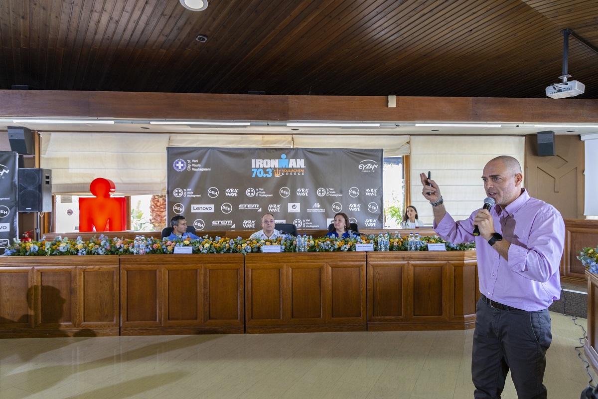 Σε Συνέντευξη Τύπου που δόθηκε την Τετάρτη 20 Σεπτεμβρίου, στο Δημαρχείο Βάρης Βούλας Βουλιαγμένης, ο Δήμαρχος Γρηγόρης Κωνσταντέλλος, τονίζοντας τη μεγάλη σημασία και τον θετικό αντίκτυπο του IRONMAN® 70.3® Vouliagmeni, Greece 2023 στην ευρύτερη περιοχή, δήλωσε: «Ανοίγουμε και φέτος την πόλη μας για να φιλοξενήσουμε ένα σπουδαίο και πολυεπίπεδο εγχείρημα για το οποίο έχει γίνει τεράστια προετοιμασία. Με υψηλό αίσθημα ευθύνης για τον τόπο μας και αναγνωρίζοντας το μοναδικό αποτέλεσμα στο οποίο μας οδήγησε η άψογη συνεργασία με την ΕΥ ΖΗΝ Greece κατά την περσινή διοργάνωση, στόχος μας και φέτος είναι να αναδείξουμε τα πλεονεκτήματα της περιοχής μας, η οποία είναι ιδιαίτερα προικισμένη λόγω της θέσης της ανάμεσα στη θάλασσα και το βουνό. Παράλληλα, θέλουμε να μεταφέρουμε μηνύματα συμπεριληπτικότητας, κοινωνικής ευαισθησίας και περιβαλλοντικής συνείδησης – αξίες οι οποίες πρέπει να είναι συνυφασμένες με κάθε δράση μας και παρούσες σε κάθε έκφανση της κοινωνίας, του πολιτισμού, του αθλητισμού. Μότο μας είναι ό,τι κάνουμε να είναι από όλους και προς όλους».