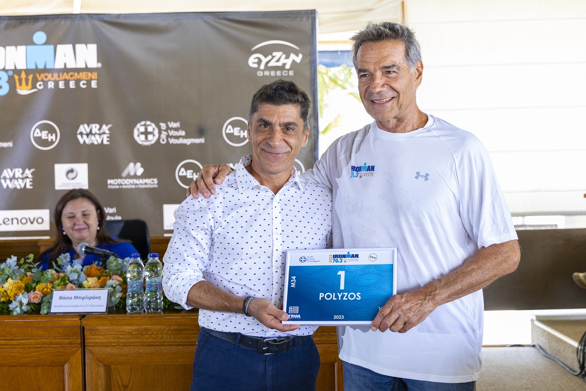 Τη Συνέντευξη Τύπου τίμησε με την παρουσία του ο Παγκόσμιος Πρωταθλητής στο Τρίαθλο, Χρήστος Γαρέφης, με τεράστια προσφορά στον αθλητισμό. Η ομάδα της ΕΥ ΖΗΝ Greece επιφύλαξε μια ευχάριστη έκπληξη στον κ. Γαρέφη, παραδίδοντάς του το No 1 BIB Number για τον αθλητή του, Παναγιώτη Πολύζο, ο οποίος βγήκε πρώτος πέρυσι στο IRONMAN® 70.3® Vouliagmeni, Greece 2022 και πριν από λίγες μέρες διακρίθηκε και στο παγκόσμιο πρωτάθλημα IRONMAN®. Ο Χρήστος Γαρέφης σημείωσε: «Δεν υπάρχει μεγαλύτερη ανταμοιβή για έναν αθλητή από τέτοιες εκδηλώσεις οι οποίες αποτελούν δικαίωση και του δείχνουν πως έχει πάρει τον σωστό δρόμο στη ζωή του. Όπως χαρακτηριστικά έχω δηλώσει και στο παρελθόν, η ανθρώπινη φυλή φοράει τα γιορτινά της σε τέτοιου είδους διοργανώσεις περισσότερο από όλες τις υπόλοιπες εκφάνσεις της ζωής μας. Όλοι θέλουν να βοηθήσουν, ο ένας βρίσκεται στο πλευρό του άλλου, περνάει ο αθλητής τον χτυπάει ο άλλος στην πλάτη, ζητωκραυγάζει το πλήθος… Αυτό είναι το μεγαλείο του αθλητισμού. Εμείς οι προπονητές πρέπει να είμαστε κοντά στη νεολαία με υπομονή, με παράδειγμα, για να μπορέσουμε να απαλύνουμε για τα παιδιά μας τη δύσκολη εποχή που έρχεται. Ο αθλητισμός, η κίνηση και η εφίδρωση ας είναι τα όπλα που θα προσφέρουμε στη νεολαία.»