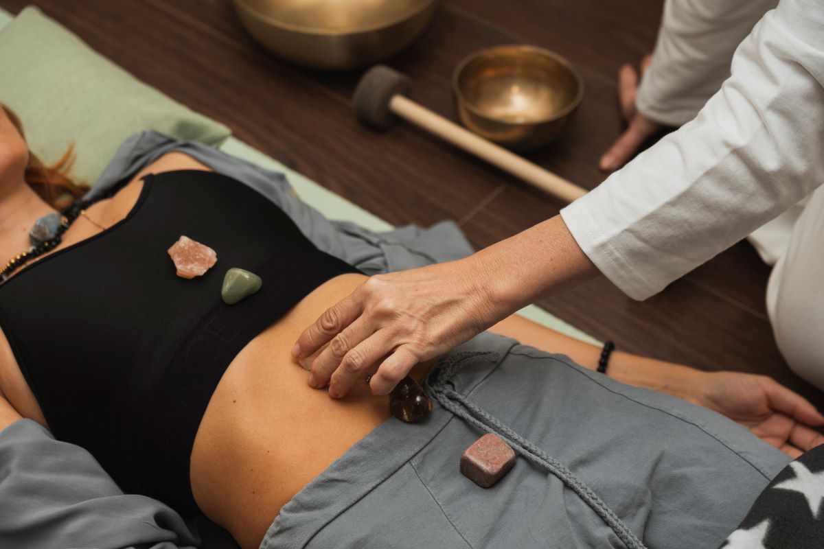 Νομίζω το καλύτερο part -αν και δύσκολο να αποφασίσεις- είναι το Sound Massage. Εκείνη τοποθετεί πάνω στο σώμα μας και γύρω από αυτό ηχογαβάθες (singing bowls) και τις κρούει. Έτσι, δημιουργείται μία ευχάριστη πλούσια ηχητική δόνηση που μας επιτρέπει να χαλαρώσουμε βαθιά. Και αυτό εξηγείται ως εξής: επειδή το σώμα μας αποτελείται κατά βάση από νερό, επιτρέπει σε αυτές τις δονήσεις να ταξιδεύουν σταδιακά από το δέρμα στους ιστούς, στα όργανα και στις κοιλότητες, στα οστά και σε ολόκληρο τον οργανισμό μας. Είναι τόση η χαλάρωση που έχει την αίσθηση ενός γαλήνιου εσωτερικού μασάζ. Για λίγο απομακρυνόμαστε από τη φλυαρία του μυαλού. Αισθανόμαστε και αφουγκραζόμαστε το μέσα μας.