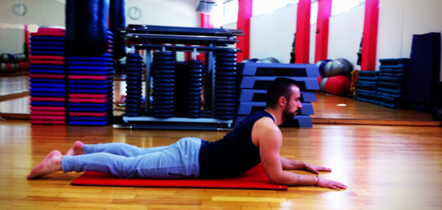 Ξαπλώστε στο πάτωμα ακουμπώντας την κοιλιά σας κάτω, με τεντωμένα πόδια και δάχτυλα ποδιών, στηριχτείτε στους αγκώνες και στους πήχεις σας, ελέγχοντας να είναι ανοιχτά στο άνοιγμα των ώμων σας.