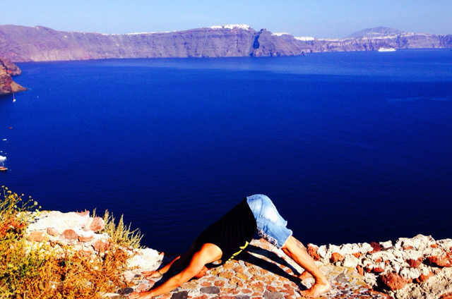 Απο την θέση της σανίδας στείλε την λεκάνη σου στο πιο ψήλο σημείο του σωματός σου καθώς αφήνεις το κεφάλι χαλαρό ανάμεσα στα χέρια σου. Ο κόκκυγας είναι στραμμένος προς τον ουρανό.Τα πλευρά είναι κλειστά. Εάν χρειαστεί λυγίστε λίγο τα γόνατα προκειμένου να μην γίνει κάμψη στην οσφυϊκή μοίρα.Η σπονδυλική στήλη είναι ευθεία και το κεφάλι στην προέκτασή της με τον αυχένα χαλαρό. Οι φτέρνες πιέζουν το πάτωμα. Κρατήστε μια θέση σαν ανάποδο V.