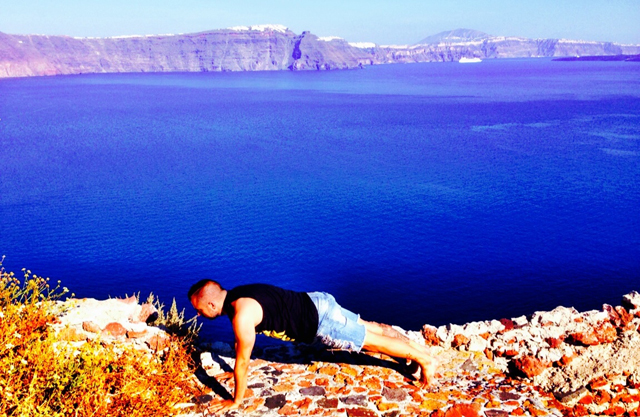 Απο την θέση του σκύλου κατέβα σε ευθεία θέση. Κατέβα αργά λυγίζοντας τους αγκώνες και κατεβαίνοντας σε θέση push- up yoga (chaturanga) (A). Ίσιωσε τα χέρια σου πιέζοντας τα μπροστά για να έρθεις σε ευθεία με το έδαφος. Επανέλαβε την άσκηση άλλες 10 φορές με αργό ρυθμό. Μετά το τελευταίο pushup ανέβασε τους γοφούς προς τα επάνω παίρνοντας πάλι την θέση του σκύλου.