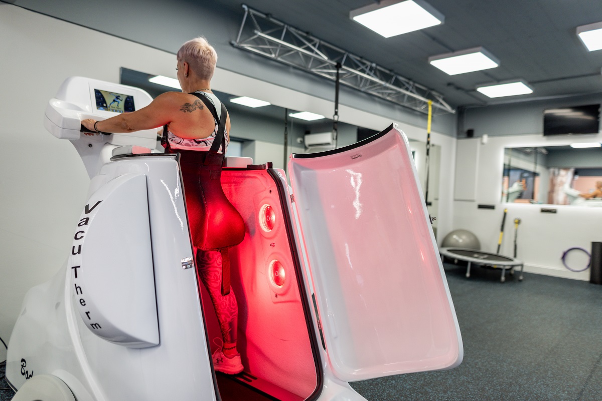 Το Vacu therm είναι σαν μία κάψουλα, μέσα στην οποία μπαίνει ο ασκούμενος φορώντας ένα ειδικό φορμάκι. Στο μηχάνημα υπάρχει ένας διάδρομος που συνδυάζει αερόβια άσκηση και άσκηση σε συνθήκες υποπίεσης. Μάλιστα αυτό που ξεχωρίζει το μηχάνημα που διαθέτει το Fit Station είναι οι υπέρυθρες λάμπες για κάψιμο λίπους. Όλα αυτά επιτυγχάνονται με την βοήθεια του θαλάμου υποπίεσης, ο οποίος αναγκάζει τον ασκούμενο να καταναλώνει περισσότερες θερμίδες από αυτές που θα κατανάλωνε κάνοντας μια απλή αερόβια άσκηση. Επιπλέον, η προπόνηση στον συγκεκριμένο θάλαμο εξαλείφει τη κυτταρίτιδα και το τοπικό πάχος, αυξάνει την καύση θερμίδων και τον μεταβολισμό, βελτιώνει την λειτουργία του καρδιαγγειακού συστήματος, κάνει σύσφιξη σε γλουτούς, βοηθάει στην επανένταξη μετά από τραυματισμούς και βελτιώνει την φυσική κατάσταση.