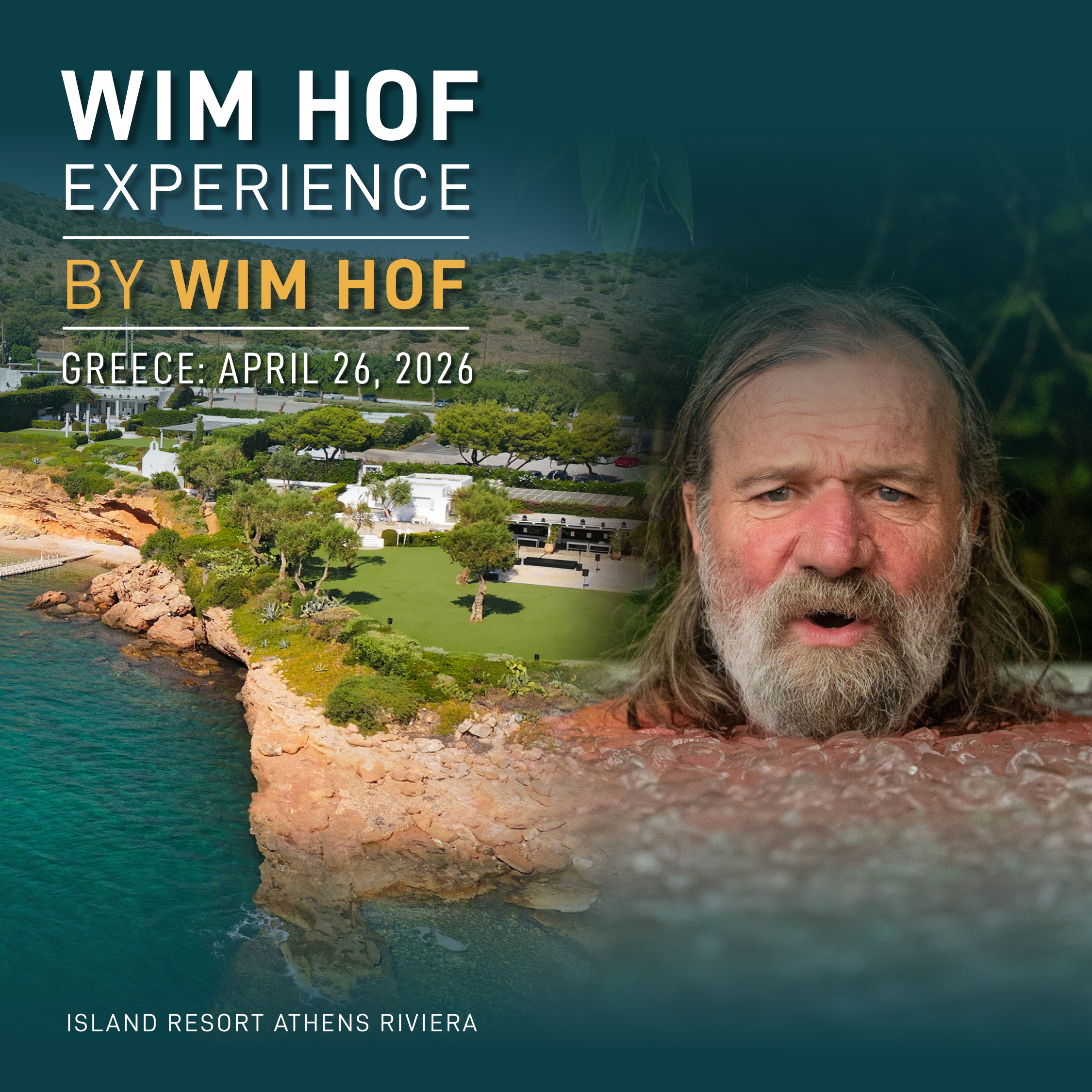 Ο Wim “Iceman” Hof έρχεται στο Island Resort Athens Riviera, στην καρδιά της Αθηναϊκής Ριβιέρας, για μια μοναδική, ολοήμερη βιωματική εμπειρία. Σε ένα περιβάλλον όπου η θάλασσα, ο καθαρός αέρας και η φυσική ηρεμία λειτουργούν ως σύμμαχοι, οι συμμετέχοντες θα έχουν την ευκαιρία να γνωρίσουν από τον ίδιο τον Wim Hof τη φιλοσοφία και τις βασικές αρχές της μεθόδου του: τη δύναμη της αναπνοής, τη συγκέντρωση του νου και τα οφέλη της ελεγχόμενης έκθεσης στο κρύο.