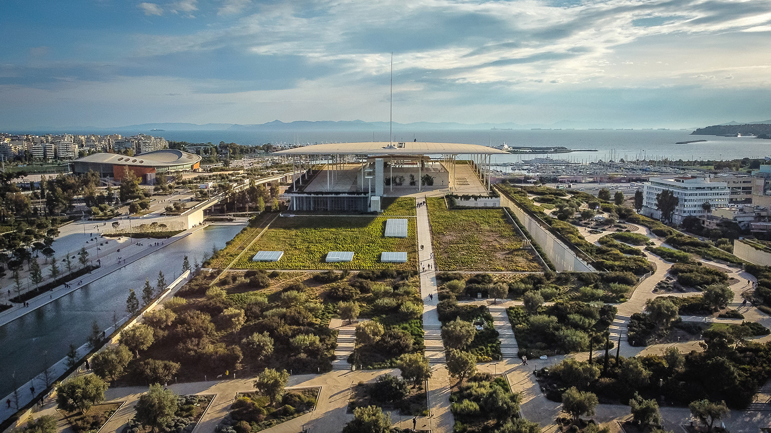 Από τον πέμπτο όροφο των γραφείων του ΚΠΙΣΝ μπορεί κάποιος να θαυμάσει το κτίριο της Εθνικής Λυρικής Σκηνής και την Εθνική Βιβλιοθήκη, να χαζέψει την αδιάκοπη ροή των επισκεπτών στην Αγορά ή να απολαύσει τα χορογραφημένα συντριβάνια που ξεπηδούν κάθε μισή ώρα από το μεγάλο Κανάλι. Στρατηγικά τοποθετημένα στο κέντρο του οικοσυστήματος του ΚΠΙΣΝ, επιβλέπουν τα περισσότερα από τα επιμέρους τοπόσημα του συμπλέγματος που, εδώ και οκτώμισι χρόνια, προσελκύει καθημερινά χιλιάδες ανθρώπους όλων των ηλικιών, απ’ όλες τις περιοχές της Αθήνας.